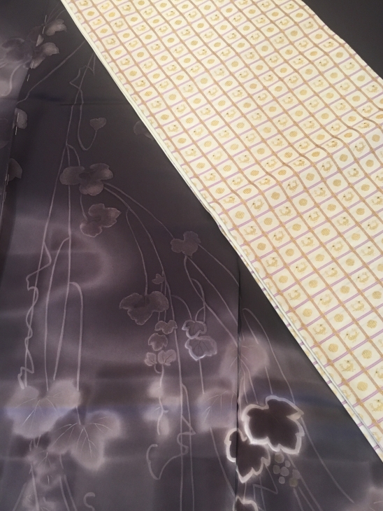 繭から製糸、手織まで純日本製の帯と3通りの取り合わせご紹介。