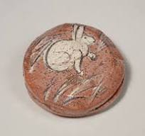 赤楽茶碗・銘「加賀」、赤楽兎文