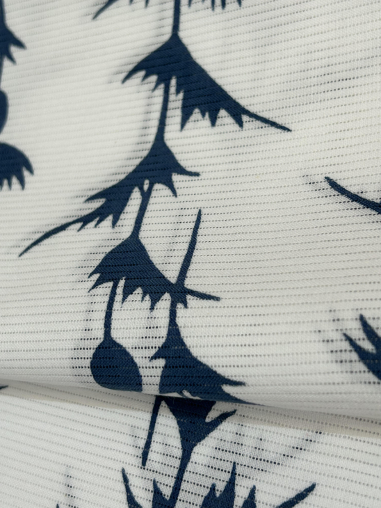 今では、貴重な綿絽、白地に紺色一色染めゆかた生地のご紹介です。