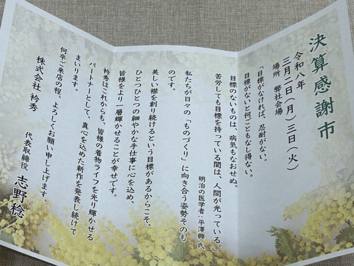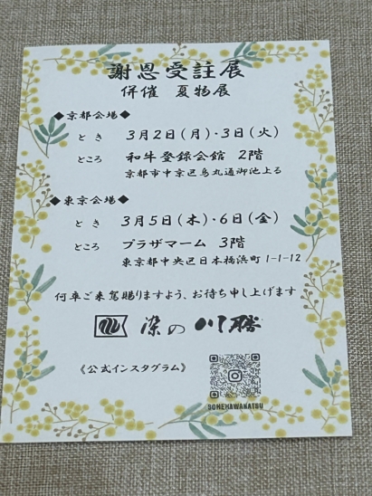 本日は、『3月、月初の陳列会の案内状で
