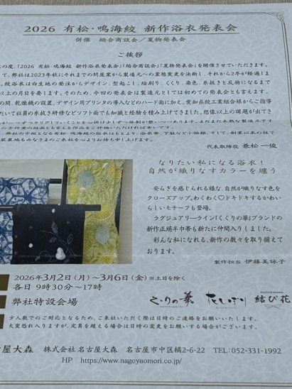 内容は、「有松・鳴海絞新作浴衣発表会」。