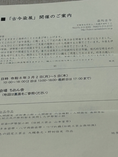 本日は、『3月、月初の陳列会の案内状で